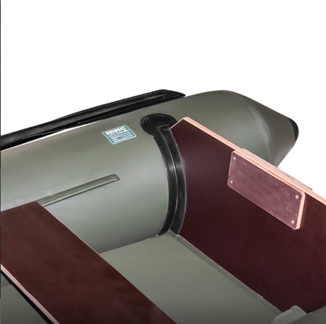 Лодка Rusboat 280Т оснащена стационарным транцем, который позволяет установить навесной мотор до 5 лошадиных сил. Транец вклеен непосредственно в баллон и оснащён резиновой защитой с торца, усиливающей место склейки и сам транец.