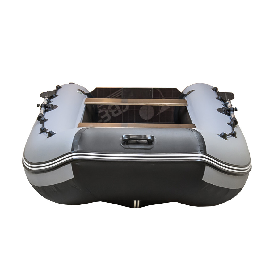 Модель RUSBOAT 340LS - это классический вариант, предназначенный для комфортной рыбалки и охоты вдвоем на открытых водоёмах в любую погоду. Лодка обладает улучшенной, обтекаемой, гидродинамичной формой, большой баллон, 43 см в диаметре, обеспечивает защиту от захлестывания самой мощной речной волны, также размер баллона обеспечивает высокую посадку и большую грузоподъемность. Увеличенная, по сравнению с аналогами, ширина лодки и, как следствие, широкий кокпит позволяют с максимальным комфортом охотиться и рыбачить вдвоем на борту, взяв с собой все необходимые снасти и снаряжение. Мощный надувной киль компенсирует ширину лодки и обеспечивает достойную манёвренность и лёгкий выход на глиссирование под мотором от 6 лошадиных сил и выше, а алюминиевые стрингеры, усиливающие пол, способны сдержать отдачу любой волны и позволяют устанавливать на лодку мотор мощностью до 15 лошадиных сил.