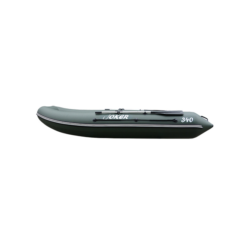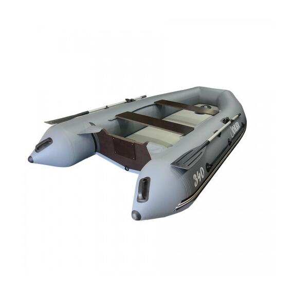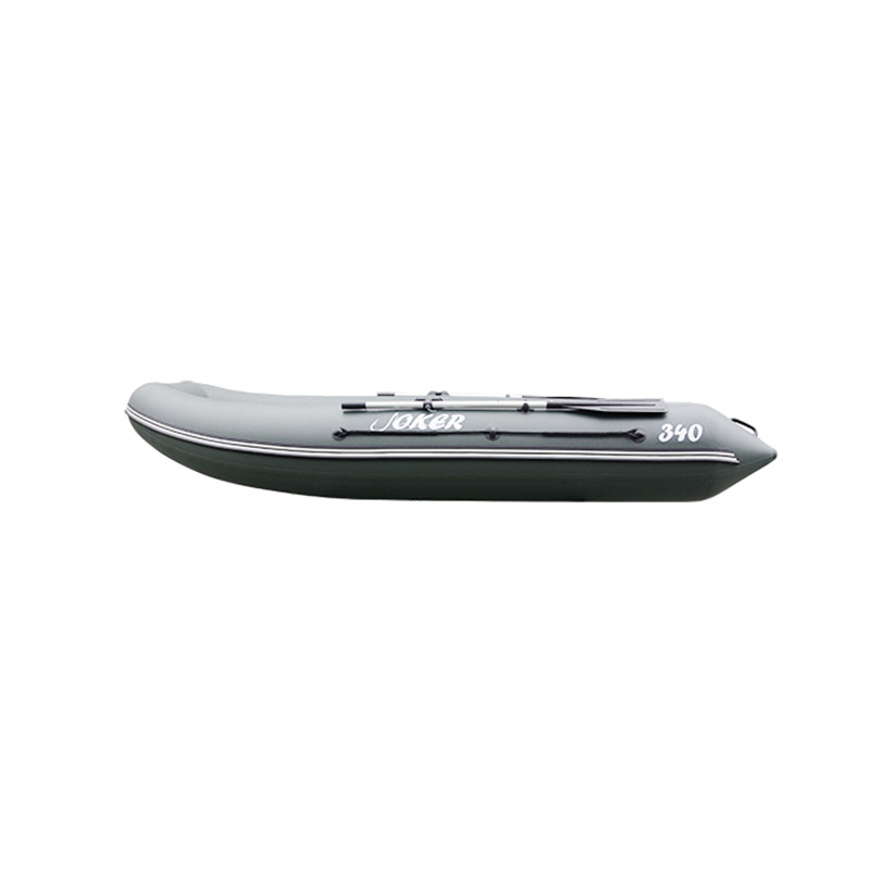 Лодка пвх надувная ALTAIR JOKER R-340 AirDeck – это килевая пайольная моторная лодка длиной 3,40 м под мотором до 18 л.с., с надувным поломкой высокого давления AirDeck. В данной серии задается специальное предложение, такое как «рыбацкая» линейка лодок – баллон большого диаметра, просторный кокпит для размещения снастей и экипажа и, конечно, практичные цвета лодок. Выраженная килеватость, тщательно отработанная форма корпуса, дополненный жёстким полом высокого давления -воздушная палуба, обеспечивающая жёсткость конструкции лодки и, как следствие, мягкость хода, курсовую устойчивость и устойчивость хода на неспокойной воде. Особенностью является тот факт, что лодка ALTAIR JOKER чувствует себя уверенно и на моторах с малой скоростью. Надувной пол AirDeck при высоком давлении (1-1,5 бар) обеспечивает жёсткость палубы аналогичному фанерному пайолу и дополнительному отсеку плавучести. Но главное – общий комплект весов. Кроме того, сборка лодки значительно упростилась – осталось только уложить аирдек на дно, установить банки и весла… Просторный кокпит, мореходность, отличная управляемость и быстрый выход в режиме глиссирования, комфорт и мягкость хода – вот что отличает эти лодки от многих одноклассников.