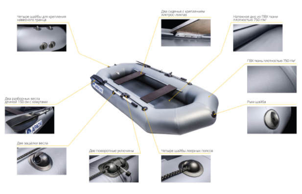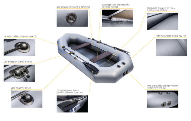 - Увеличенный размер баллонов позволяет чувствовать себя увереннее внутри лодки и избавляет от ощущения, что сидишь на скамейке над водой.