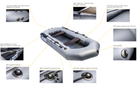 - Увеличенный размер баллонов позволяет чувствовать себя увереннее внутри лодки и избавляет от ощущения, что сидишь на скамейке над водой.