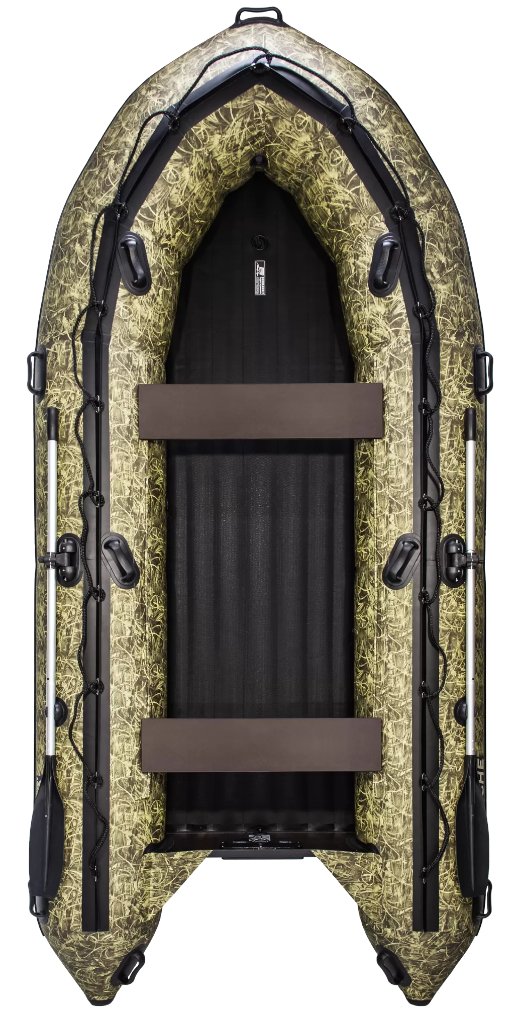 - Уникальная конструкция надувного дна низкого давления с килевой передней частью и гидролыжей в корме обеспечивает идеальную управляемость и легкий ход