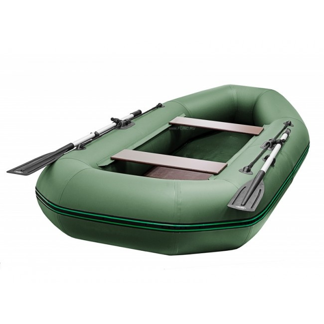 Двухместная лодка FLINC F280L имеет два надувных баллона, разделенных на герметичные отсеки. Между ними крепится жесткое вставное днище (пайол) из влагостойкой фанеры.