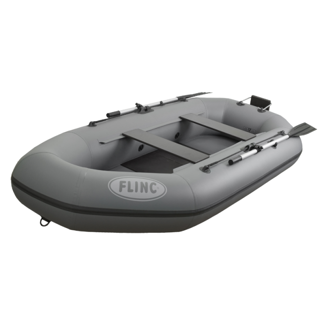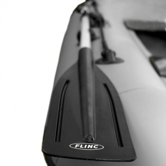 Надувная лодка пвх FLINC F280TL оборудована банками, которые крепятся к бортам корпуса при помощи системы "ликтрос-ликпаз" и навесным транцем для крепления мотора до 3,5 л.с..