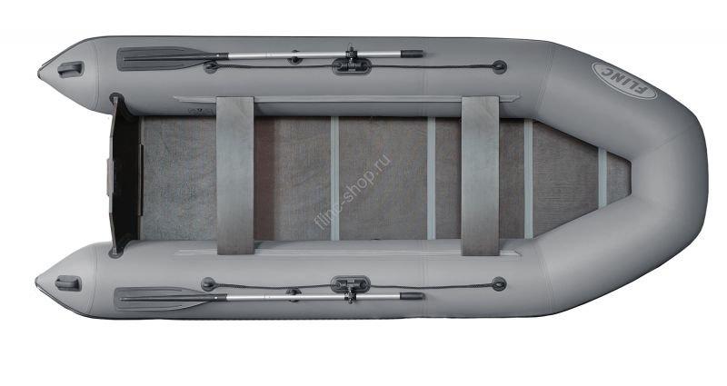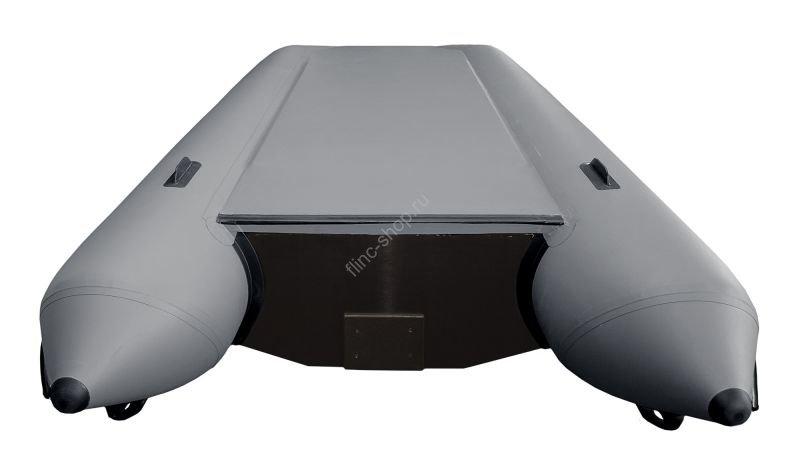 Корпус транцевой лодки FLINC FT340L имеет плоское днище, что уменьшает сопротивление воды. Чтобы придать лодке курсовую устойчивость, вместо киля используются элементы курсовой стабилизации, небольшие кили-плавники из ПВХ установленные на нижней части баллона в области транцевой плиты. Эти кили-плавники дополнительно уменьшают радиус разворота лодки, за счет такого решения уменьшен вес и габарит судна.