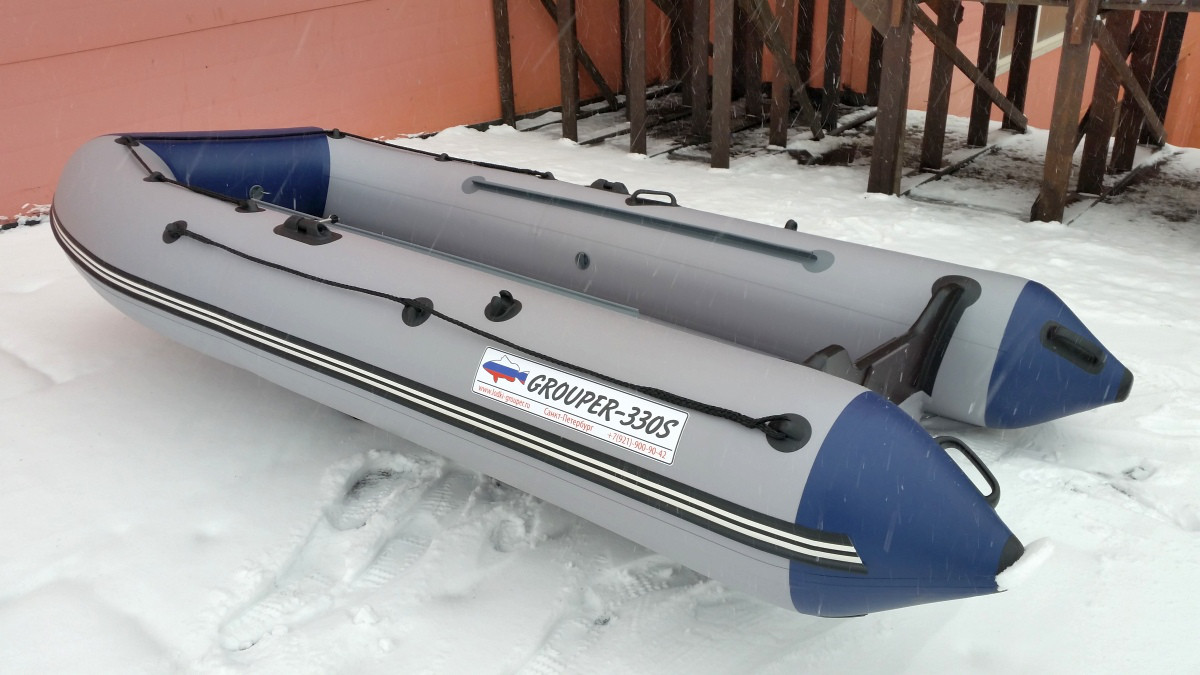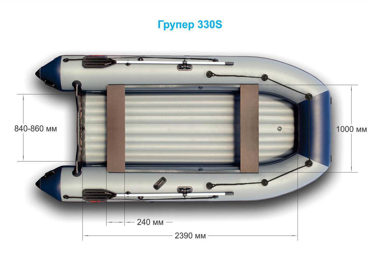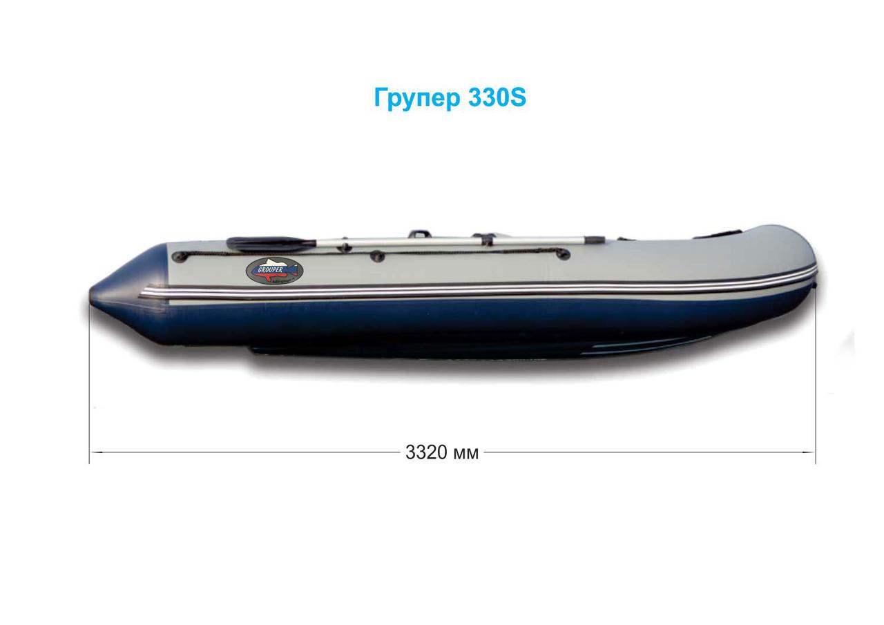 НАДУВНАЯ ЛОДКА ПВХГРУПЕР 330SНадувная ПВХ лодка Групер330S создана для достаточно больших и быстрых переходов с "точки на точку" на 10 сильном и более двигателе и последующей рыбалки вдвоём. Лодка Групер330S отличается от Групер-330 усиленной транцевой плитой толщиной 27 мм и предназначена для перемещения по воде людей и небольших грузов. Может эксплуатироваться как в гребном варианте, так и с подвесным лодочным мотором до 15 л/с на небольших внутренних акваториях и в прибрежной зоне морей. С более мощным мотором зона рыбалки значительно расширится. И если у Вас есть большая лодка с мощным мотором, а хочется иметь комплект эгоиста, то Вам не придется покупать новый мотор.