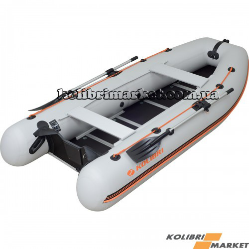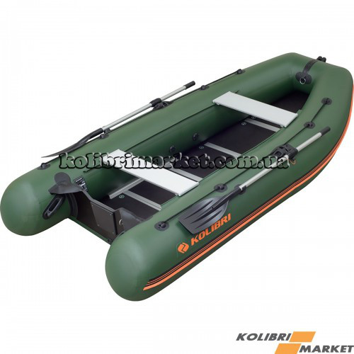 Моторная лодка Колибри КМ 360DSL. Моторные лодки КОЛИБРИ серии SL это полноразмерные килевые надувные лодки c плавно сужающимся к носу корпусом лодки с полусферическими кормовыми баллонами и жестким 12-мм днищевым настилом, усиленным алюминиевыми стрингерами. Баллоны имеют до пяти независимых герметичных отсеков диаметром до 49 см, что обеспечивает превосходную остойчивость, хорошие мореходные качества и повышенную безопасность при использовании лодки на открытых водоемах даже при серьезном волнении. Просторный кокпит в комплексе с большой грузоподъемностью позволяет удобно расположить максимальное количество груза и комфортно разместить пассажиров. В собранном виде лодка упаковывается две сумки, которые легко располагаются в багажнике автомобиля. Материал: 5-ти слойн. ПВХ 1100 гр./м2.