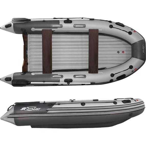 Лодка Skat Тритон 390 НД — моторная модель с тримаранным надувным дном, делающим использование более комфортным для пассажиров и улучшающим мореходные качества судна — сопротивление водным потокам и волнам минимальное. По вместимости данная модель рассчитана на 6 человек. На стационарный транец можно установить мотор мощностью до 25 л.с. включительно. Сборка лодки не занимает много времени благодаря полностью надувной конструкции судна. Днище лодки усилено резиновыми лентами по всем трем килям по всей длине.