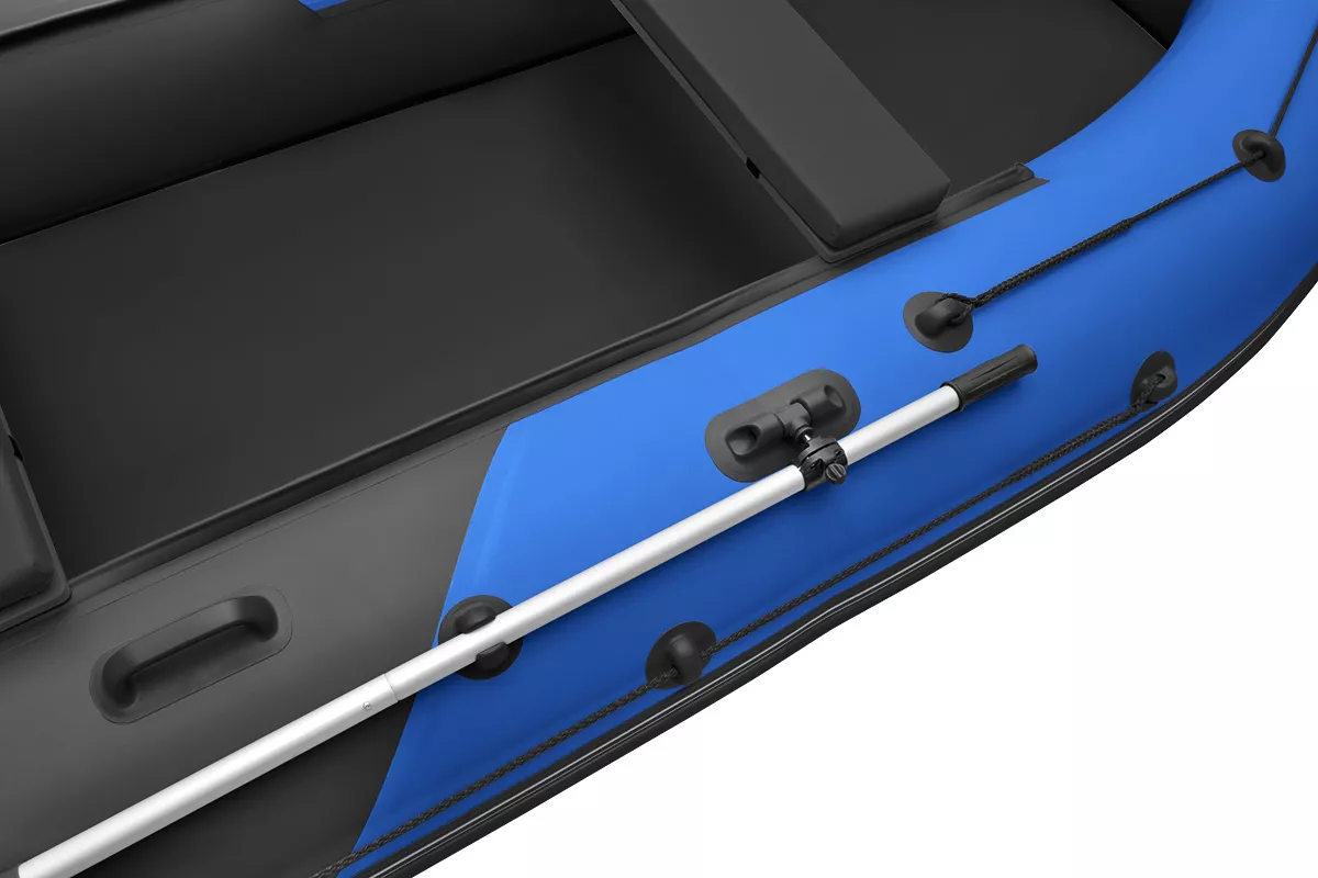Лодка оснащена леерными поясами, натянутыми вдоль борта лодки для безопасности пассажиров. Данная модель комплектуется разборными веслами с пластиковой фурнитурой и поворотными уключинами.