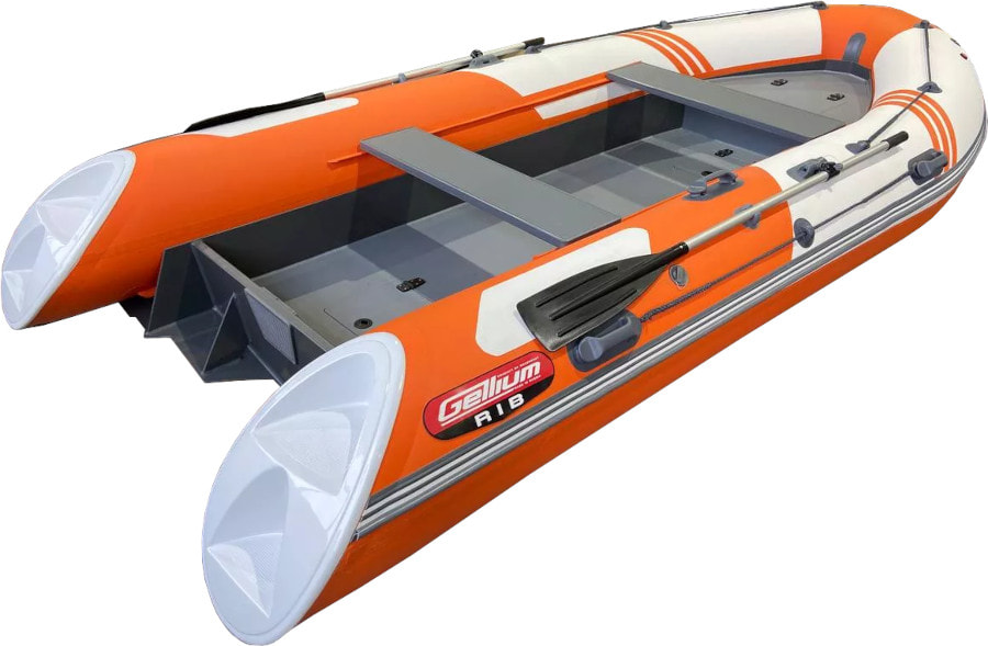 На лодку РИБ Gelium 4300 можно устанавливать моторы различной мощности (до 30 л.с.), как и на обычные катера. Надувные многокамерные воздушные баллоны позволяют лодке РИБ превосходить обычные катера по такой важной характеристике, как грузоподъемность. Кроме того, жесткое дно дает лодке РИБ преимущества в скорости, плавности хода, прочности.