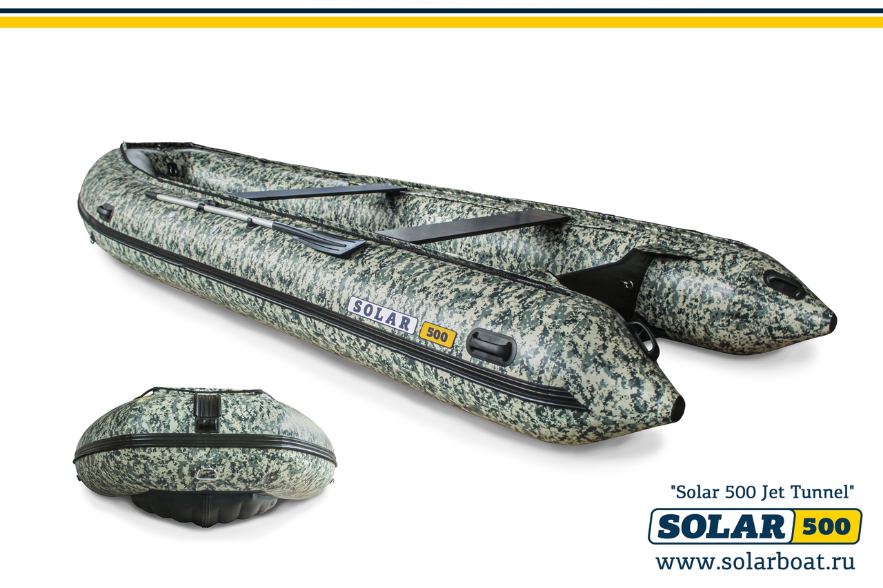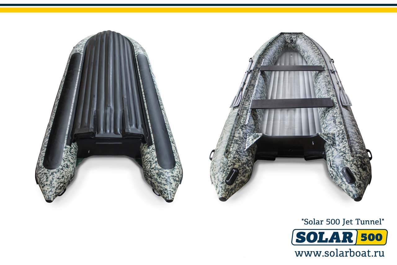 Модель содержит в своей конструкции, запатентованную разрабоку компании Solar(Солар) - водоводный тоннель! Если Вы любитель покорять горные, порожистые, супермелководные реки - то такая лодка придется Вам по душе! Водоводный тоннель от SOLAR, позволит Вам проходить по почти любым, даже самым безводным водоёмам и надежно защитит водоприемник мотора (интейк). Проходимость SOLAR-500 JET tunnel в режиме глиссирования составляет всего 5-7 см.