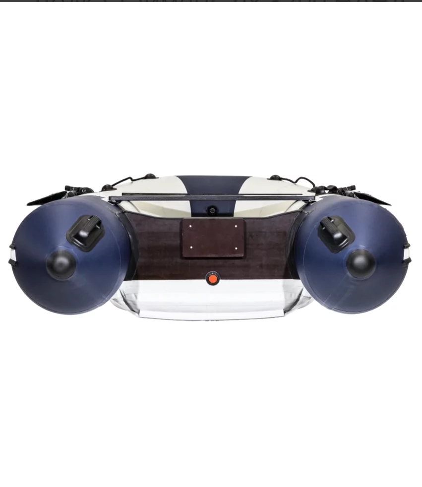 Корпус лодки ПВХ состоит из двух надувных баллонов диаметром 40 см., разделенных на три независимых отсека + надувное дно, таким образом, чтобы в случае выхода из строя одного из отсеков лодка сохраняла положение равновесия.