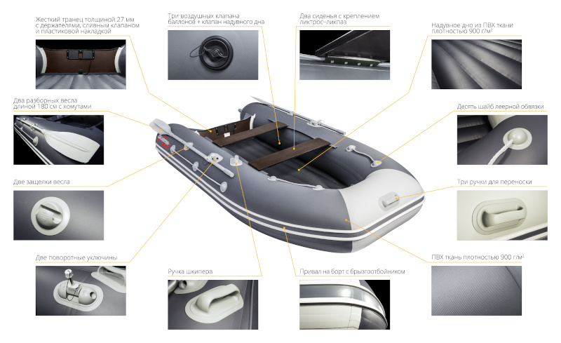 При плотности ткани ПВХ 900 гр/м², её владельцу не приходится беспокоиться о возможном механическом повреждении баллонов лодки, даже если он находится в дальнем путешествии.