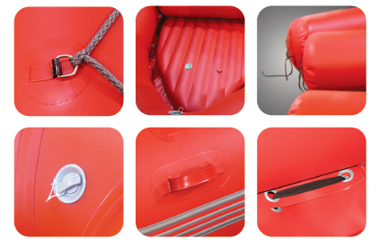 Баллон диаметром 50 см разделен на 4 воздушных отсека, каждый снабжен надежным клапаном. Дополнительно на дно укладывается привязной надувной пол со стравливающим клапаном. Это очень важная особенность, поскольку при резких нагрузках (наскоках на препятствия) может возникнуть избыточное давление, способное привести к разрыву ПВХ.