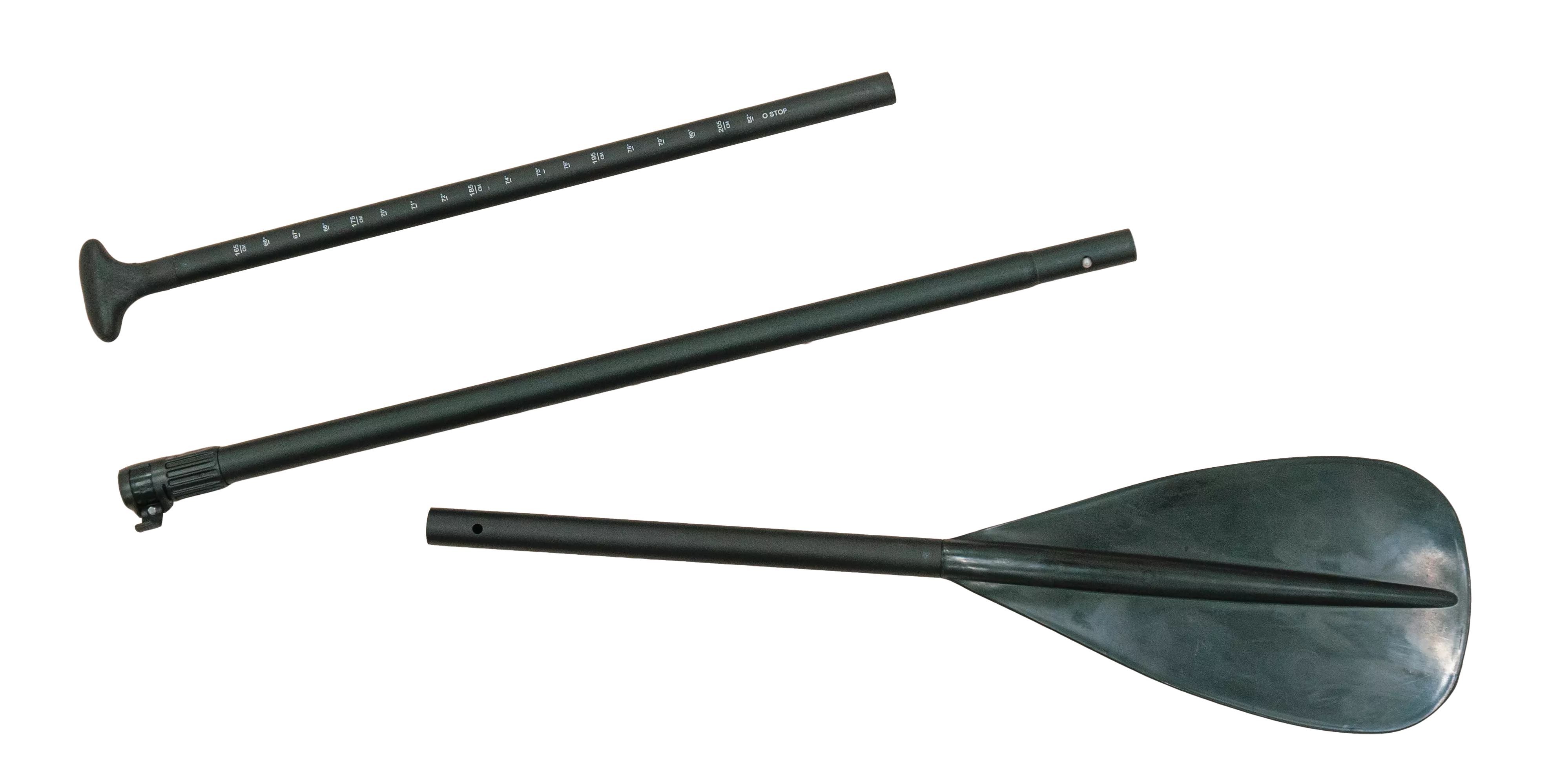 2) Полный комплект (регулируемое весло, ручной насос с манометром, рем. комплект, киль, лиш, сумка для переноски) для выхода на воду.