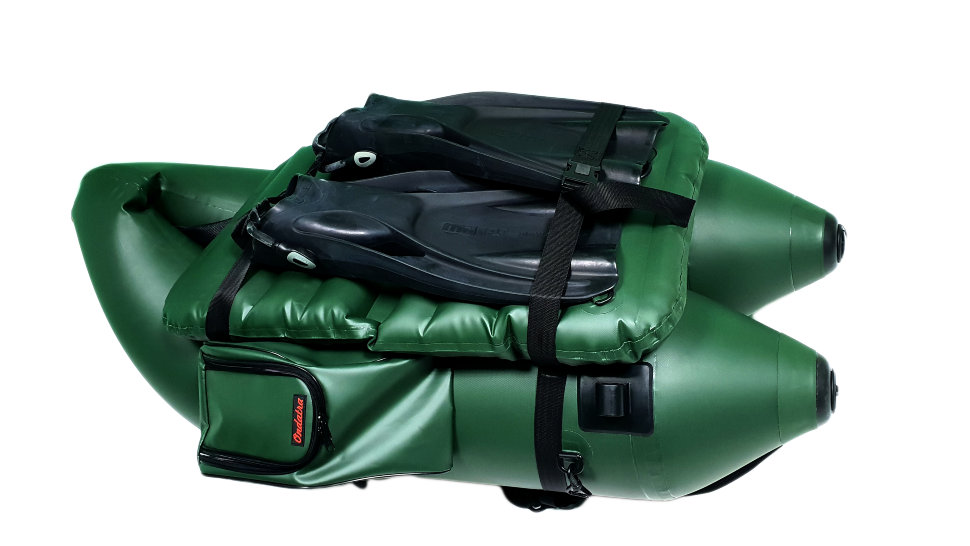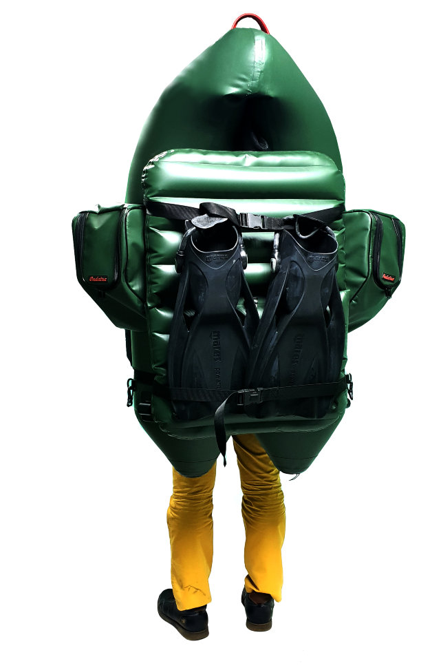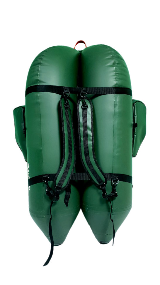 Теперь тяжелые долгий путь с плотиком в прошлом: обвязка позволяет стянуть баллоны между собой, разместить сиденье и закрепить ласты и с легкостью переносить плот/лодку на приличные расстояния.