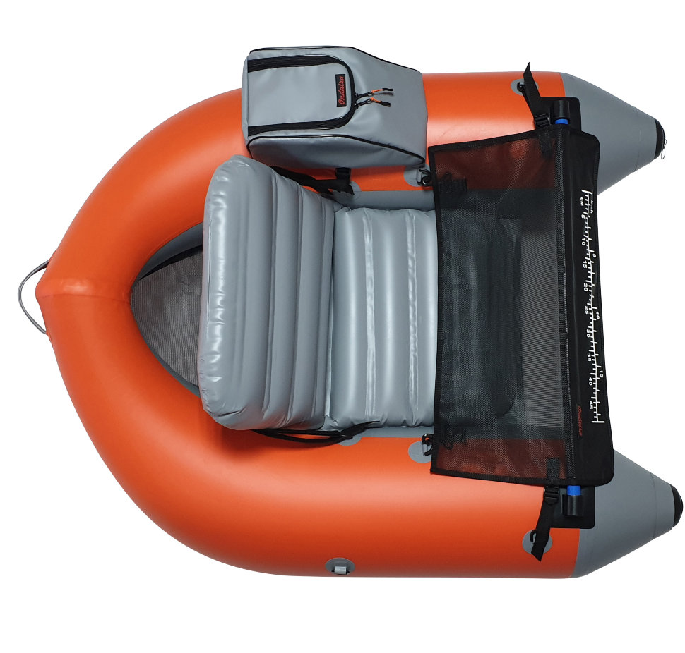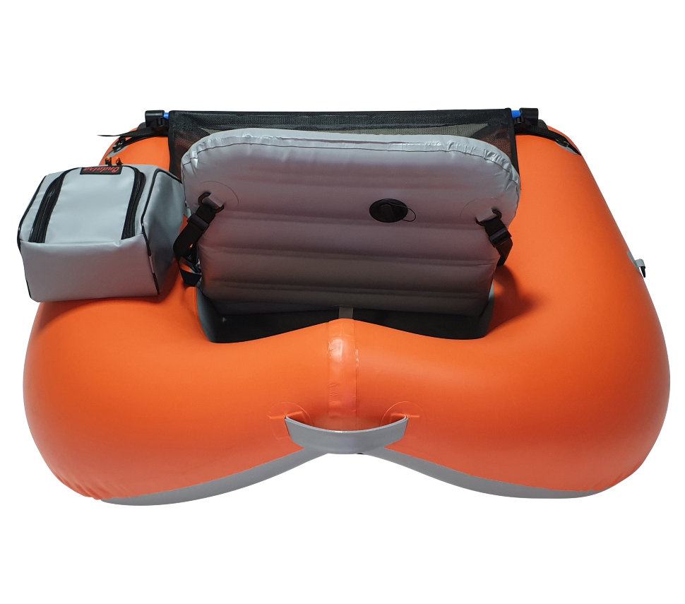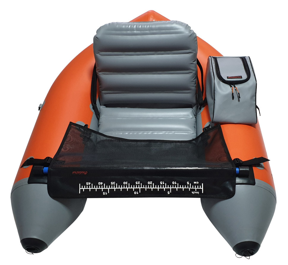 Сумка для аксессуаров выполнена из ПВХ ткани, что обеспечивает защиту приманок и других вещей при перевозке и в ненастную погоду. Сумка крепится к D-кольцам плотика при помощи 2-х строп с трехщелевыми пряжками-самосбросами, что обеспечивает надежную фиксацию во время рыбалки и быстрый демонтаж сумок после. Столик выполнен из армированной ПВХ-сетки. Перекладина добавляет жесткость конструкции плотика и удобство при гребле ластами. На столике удобно менять наживки, а также замерить длину улова линейкой, которая размечена в сантиметрах и дюймах. Удобные съемные анатомические лямки позволяют переносить плотик в накаченном состоянии на существенные расстояния, благодаря чему, Вы можете вернуться к месту старта по берегу.