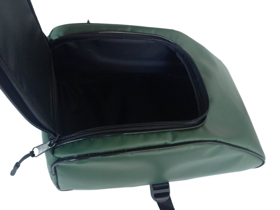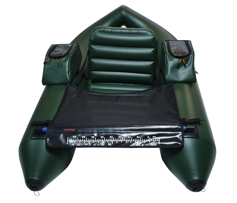 Сумка для аксессуаров выполнена из ПВХ ткани, что обеспечивает защиту приманок и других вещей при перевозке и в ненастную погоду. Сумка крепится к D-кольцам плотика при помощи 2-х строп с трехщелевыми пряжками-самосбросами, что обеспечивает надежную фиксацию во время рыбалки и быстрый демонтаж сумок после. Столик выполнен из армированной ПВХ-сетки. Перекладина добавляет жесткость конструкции плотика и удобство при гребле ластами. На столике удобно менять наживки, а также замерить длину улова линейкой, которая размечена в сантиметрах и дюймах. Удобные съемные анатомические лямки позволяют переносить плотик в накаченном состоянии на существенные расстояния, благодаря чему, Вы можете вернуться к месту старта по берегу.