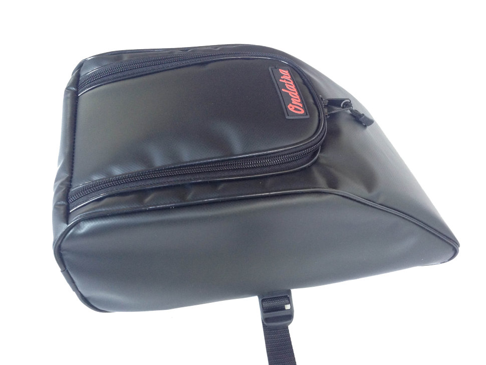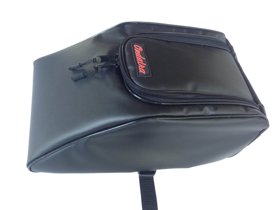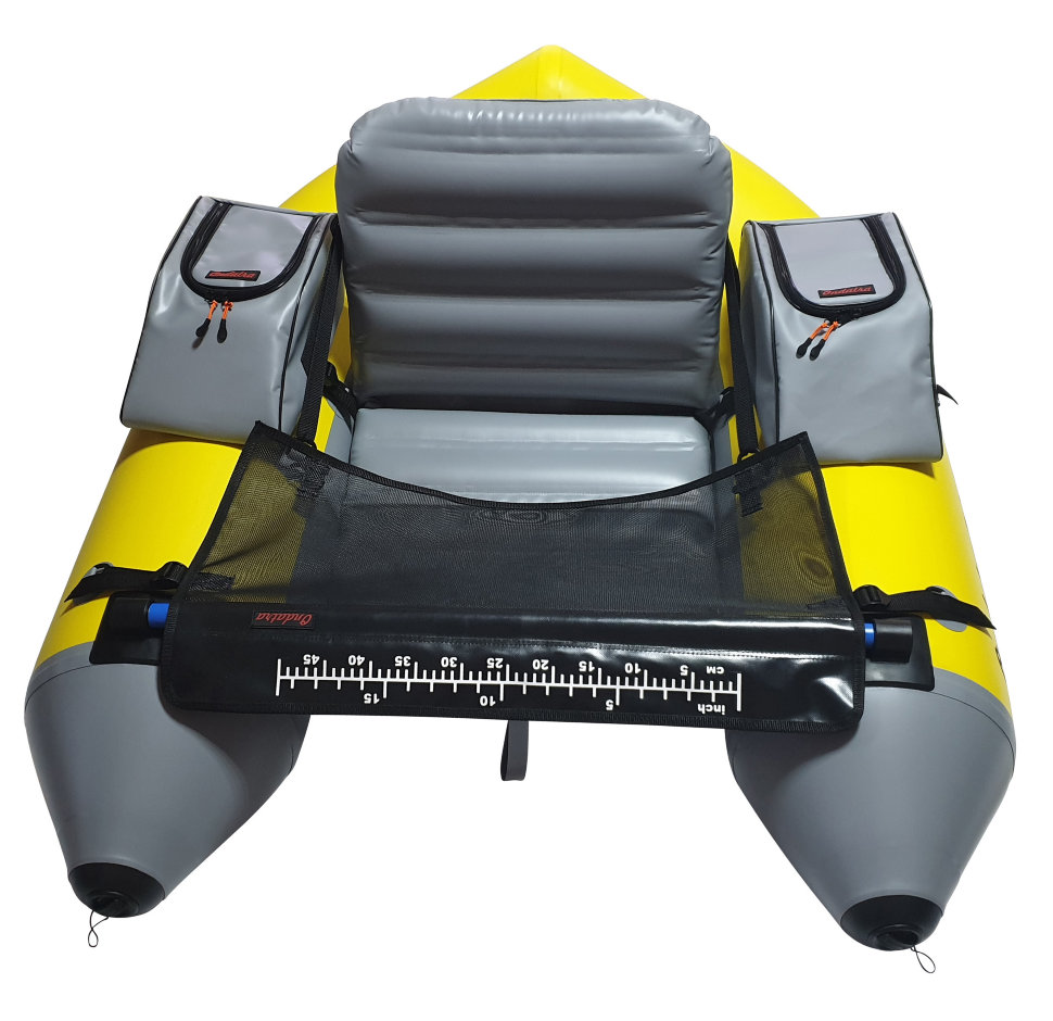 Сумка для аксессуаров выполнена из ПВХ ткани, что обеспечивает защиту приманок и других вещей при перевозке и в ненастную погоду. Сумка крепится к D-кольцам плотика при помощи 2-х строп с трехщелевыми пряжками-самосбросами, что обеспечивает надежную фиксацию во время рыбалки и быстрый демонтаж сумок после. Столик выполнен из армированной ПВХ-сетки. Перекладина добавляет жесткость конструкции плотика и удобство при гребле ластами. На столике удобно менять наживки, а также замерить длину улова линейкой, которая размечена в сантиметрах и дюймах. Удобные съемные анатомические лямки позволяют переносить плотик в накаченном состоянии на существенные расстояния, благодаря чему, Вы можете вернуться к месту старта по берегу.