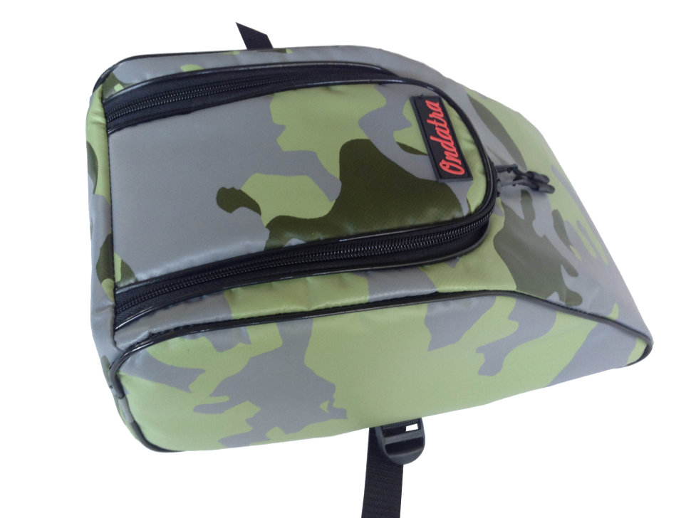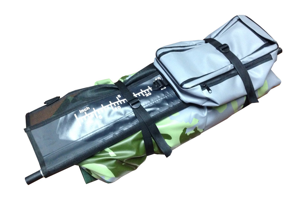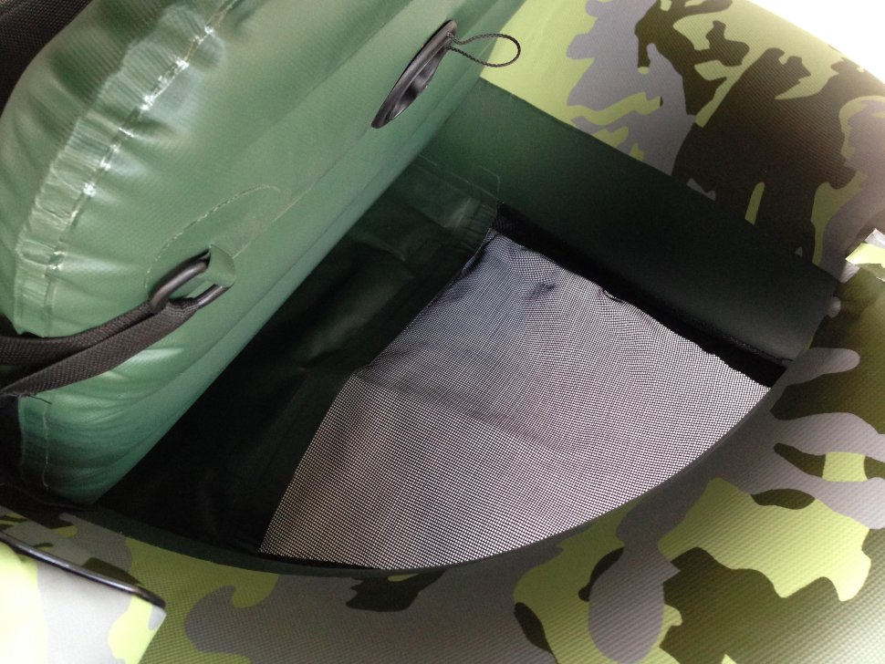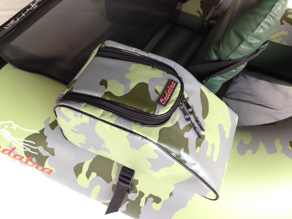 Сумка для аксессуаров выполнена из ПВХ ткани, что обеспечивает защиту приманок и других вещей при перевозке и в ненастную погоду. Сумка крепится к D-кольцам плотика при помощи 2-х строп с трехщелевыми пряжками-самосбросами, что обеспечивает надежную фиксацию во время рыбалки и быстрый демонтаж сумок после. Столик выполнен из армированной ПВХ-сетки. Перекладина добавляет жесткость конструкции плотика и удобство при гребле ластами. На столике удобно менять наживки, а также замерить длину улова линейкой, которая размечена в сантиметрах и дюймах. Удобные съемные анатомические лямки позволяют переносить плотик в накаченном состоянии на существенные расстояния, благодаря чему, Вы можете вернуться к месту старта по берегу.
