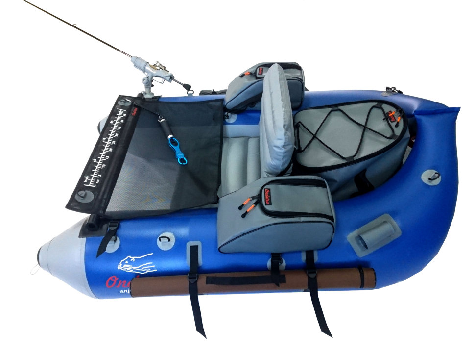 Сумка для аксессуаров выполнена из ПВХ ткани, что обеспечивает защиту приманок и других вещей при перевозке и в ненастную погоду. Сумка крепится к D-кольцам плотика при помощи 2-х строп с трехщелевыми пряжками-самосбросами, что обеспечивает надежную фиксацию во время рыбалки и быстрый демонтаж сумок после. Столик выполнен из армированной ПВХ-сетки. Перекладина добавляет жесткость конструкции плотика и удобство при гребле ластами. На столике удобно менять наживки, а также замерить длину улова линейкой, которая размечена в сантиметрах и дюймах. Удобные съемные анатомические лямки позволяют переносить плотик в накаченном состоянии на существенные расстояния, благодаря чему, Вы можете вернуться к месту старта по берегу.