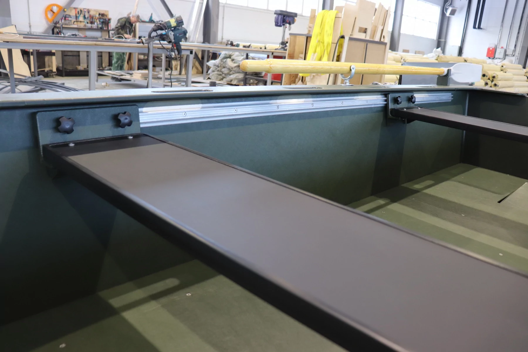 Под заказ может быть укомплектована транспортировочным тентом, спининнгодержателями, сиденьем капитана, рундуком. На лавки доступны к заказу мягкие накладки.