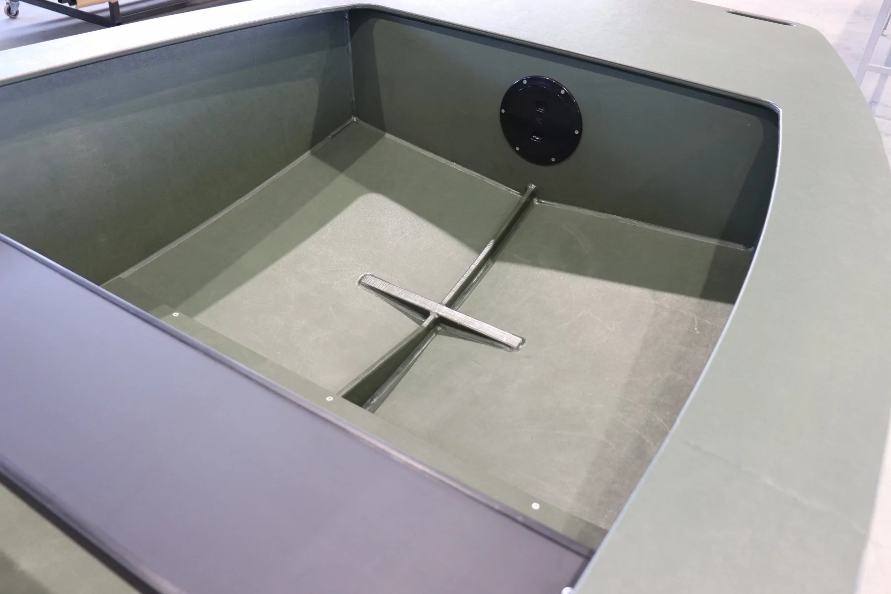 Сама конструкция пола имеет малую килеватость, имеет съемный фальш-пол, который связывает шпангоуты закрывая их и усиливая жесткость пола.