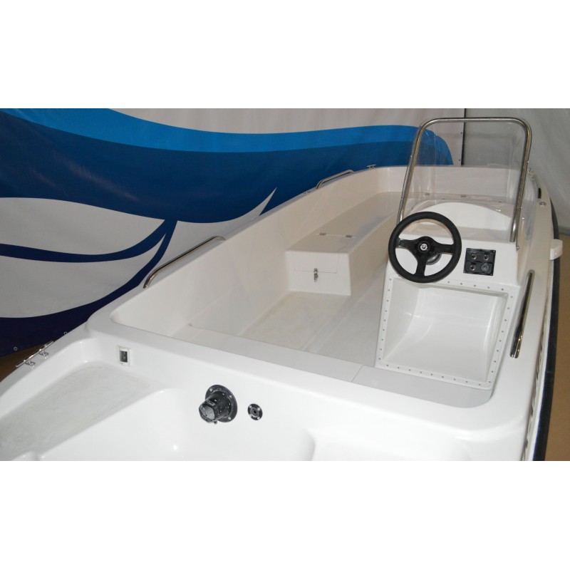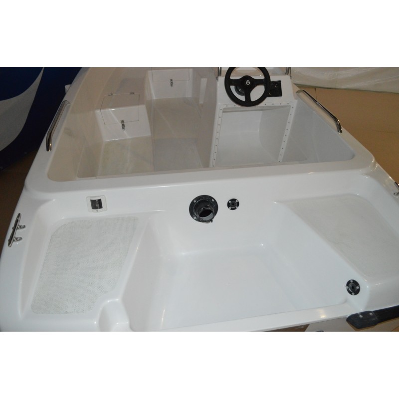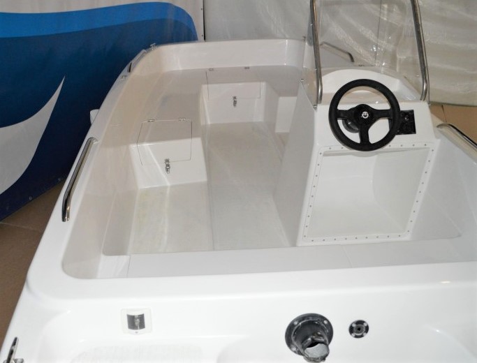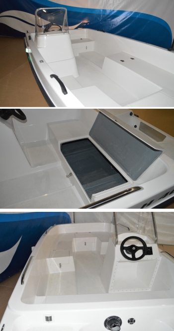 Общий объем багажных отсеков составляет более 250 л, все крышки оборудуются запорными устройствами. Все носовые рундуки – сухие. А кормовой имеет самоотливную дренажную систему, в нем предусмотрена установка автоматической дренажной помпы с поплавковым выключателем.