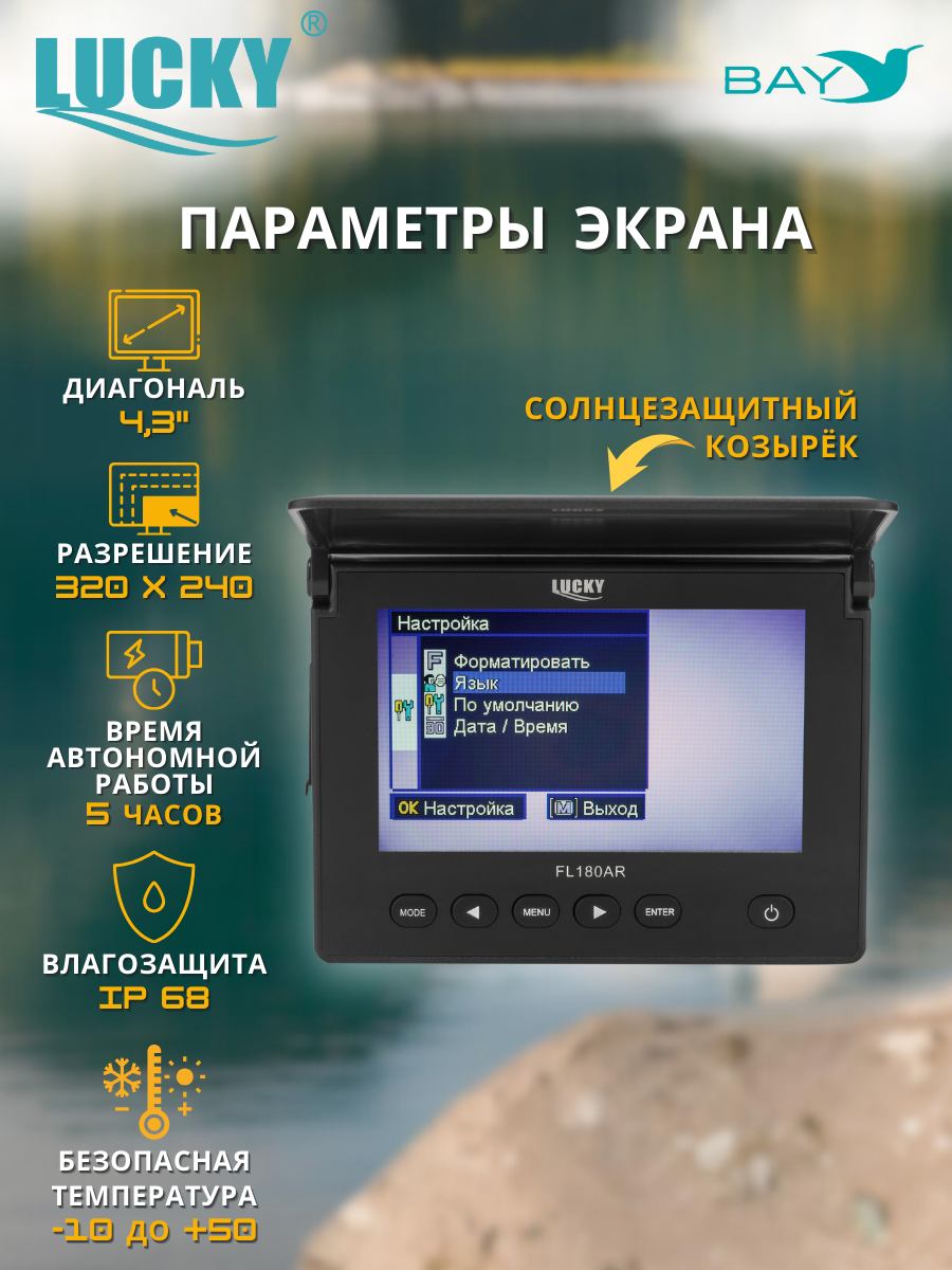 С подводной видеокамерой Lucky FL180AR, оснащенной 4.3 дюймовым цветным экраном и мощной оптикой, Вы всегда за меньшее время добьетесь больших уловов.
