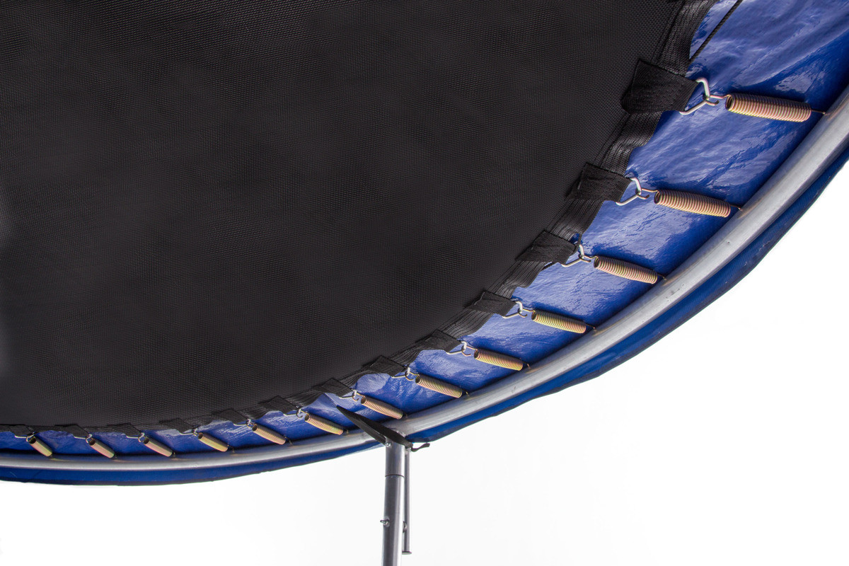 ✔Плотное защитное покрытие толщиной 12мм и шириной 36 см полностью закрывает пружины и каркас рамы батута, тем самым исключая падение ног в эту часть и последующих за этим травм.