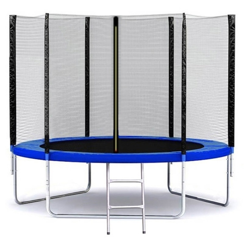 Батут Funfit 312 см с внешней сеткой и лестницей отлично подходит детям для активного отдыха и веселых спортивных упражнений.