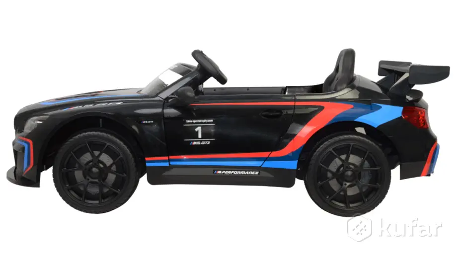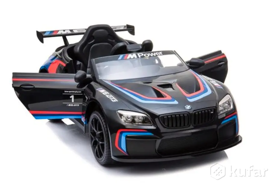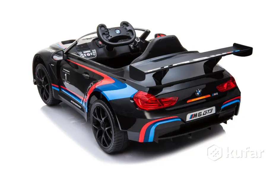 Данная модель детская версия BMW M6 GT3 имеет как механическое управление (ребенком самостоятельно), так и управление взрослым на пульте управлении с кнопкой принудительной остановки.