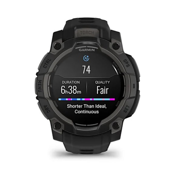 Garmin Instinct 3 выделяется стильным, но брутальным дизайном, который подчеркивает его прочность и надежность. Экран диагональю 1,3 дюйма с AMOLED-матрицей обеспечивает превосходную читаемость даже при ярком солнечном свете. Прочный корпус из армированного волокном полимера и усиленная рамка делают часы устойчивыми к механическим повреждениям.