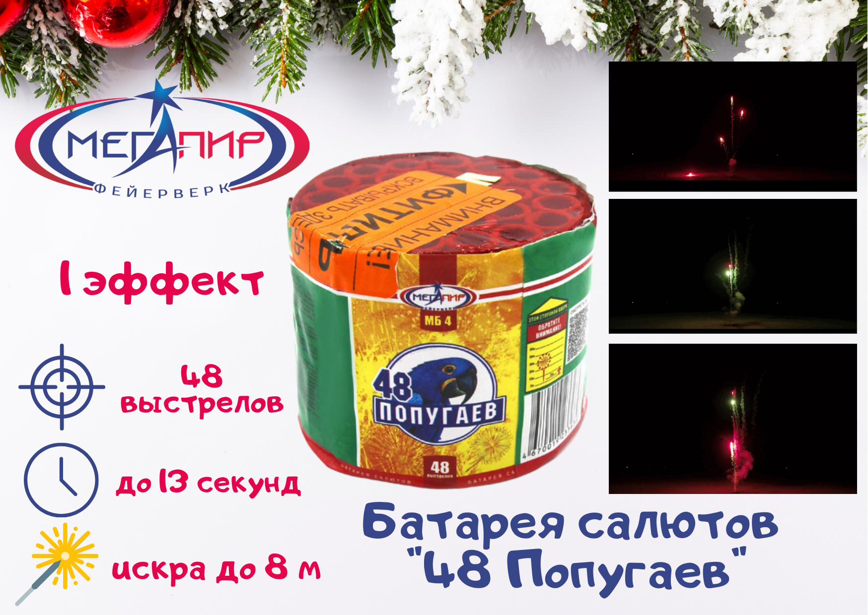 Батарея салютов 48 Попугаев на 48 залпов калибром 0.3"(8мм)