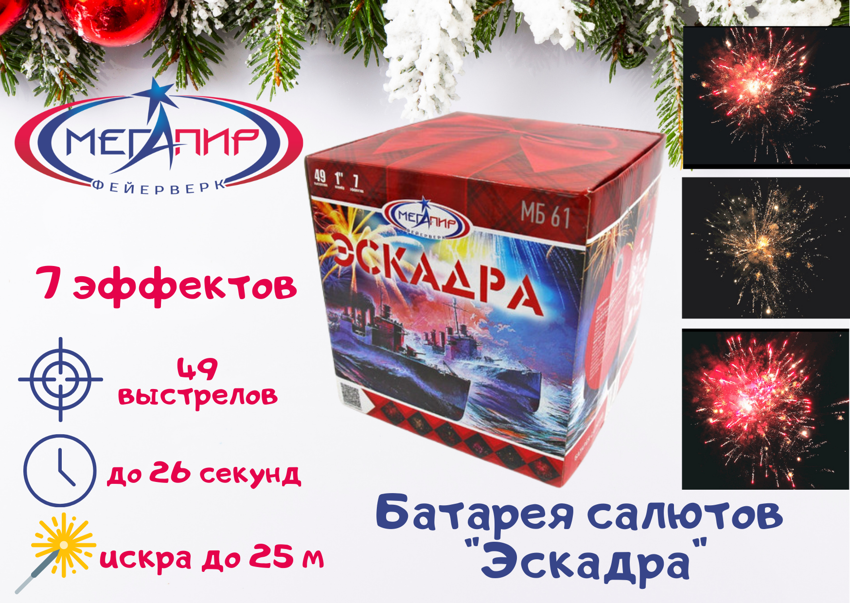 Торговая марка Мегапир предлагает Вам украсить любой праздник 49-тью залпами калибром 1"(25мм), радуя вас эффектами, среди которых: