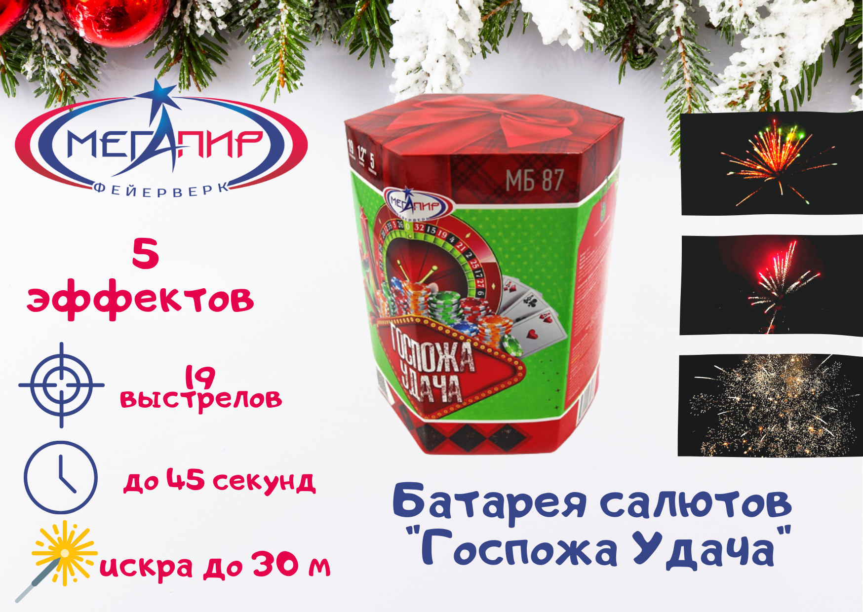 Торговая марка Мегапир предлагает Вам украсить любой праздник 19-тью залпами калибром 1.2"(30мм), радуя вас эффектами, среди которых: