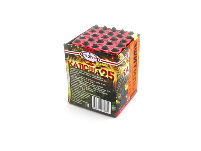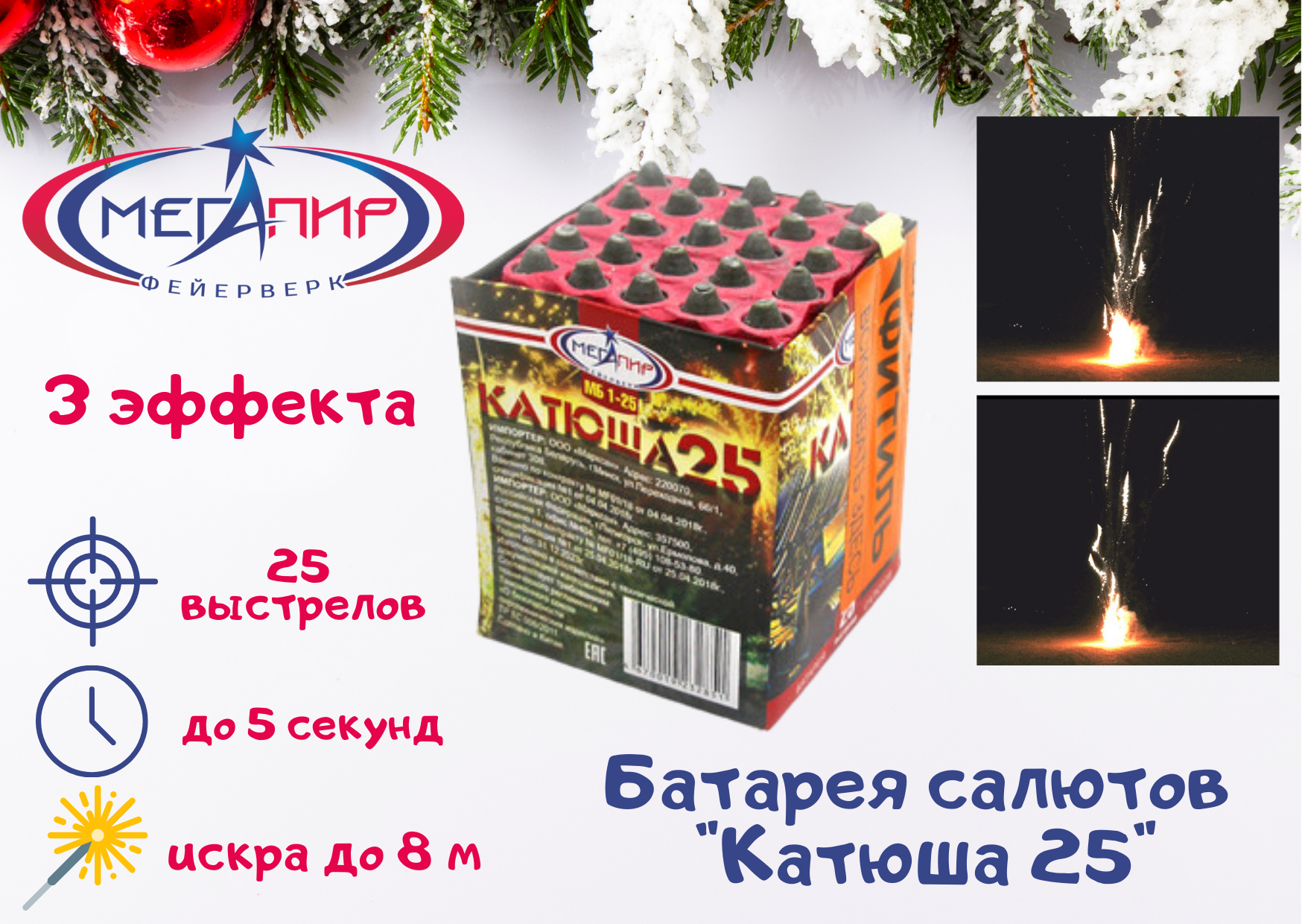 Представляем Вашему вниманию одну из самых компактных батарей салютов из серии «Катюша» от ТМ Мегапир. В такой маленькой коробочке целых 25 зарядов!