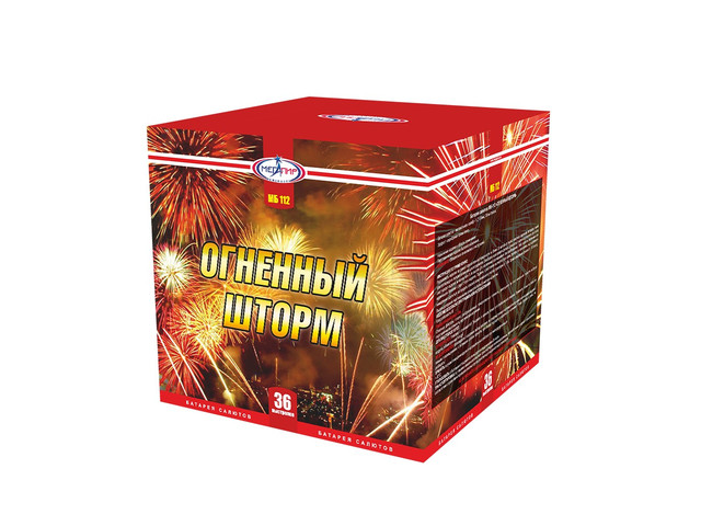 Батарея салютов Огненный Шторм на 36 залпов калибром 1.2"(30мм)