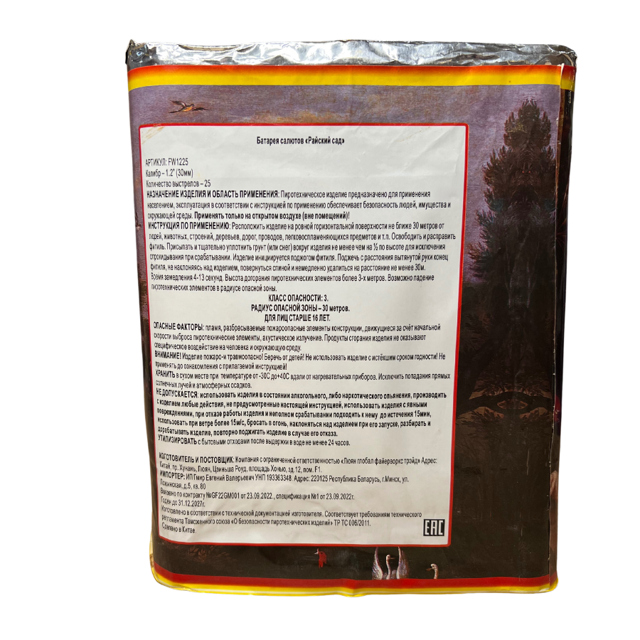 Батарея салютов Райский сад 25 залпов калибром 1.2"(30мм)