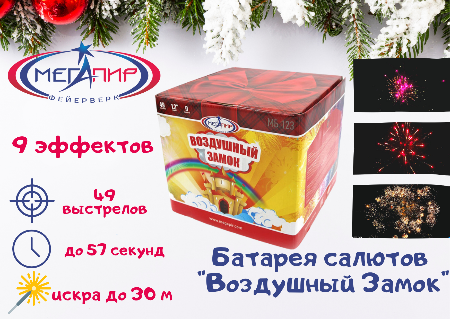 Торговая марка Мегапир предлагает Вам украсить любой праздник 49-тью залпами калибром 1.2"(30мм), радуя вас эффектами, среди которых: