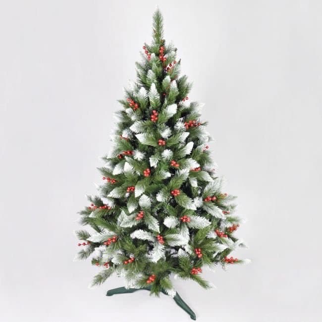 Искусственная ель Mari с красным украшениями высотой 1.8 метра – прекрасное украшение для Вашего дома в новогодние праздники. Пышная жесткая хвоя хорошо держит форму и абсолютно безопасна. Украшают ёлочку лапки с белым напылением на кончиках и веточки красной рябины.