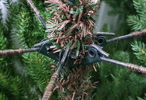 Нижние ветви откидываются на шарнирах, а верхние жестко закреплены на стволе и просто отгибаются от него при сборке.