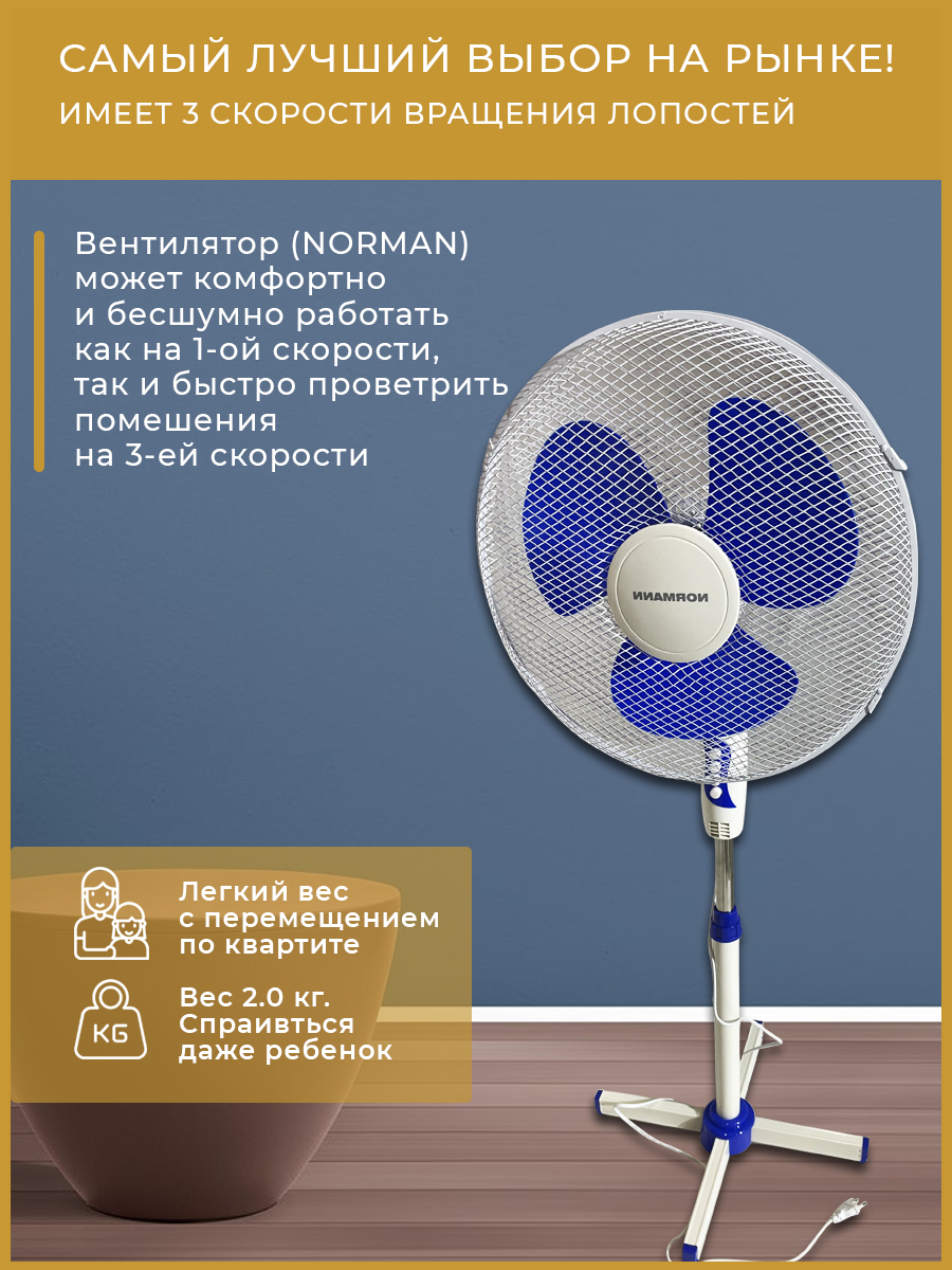 Преимущества вентилятора электрического напольного ACF-192 NORMANN: