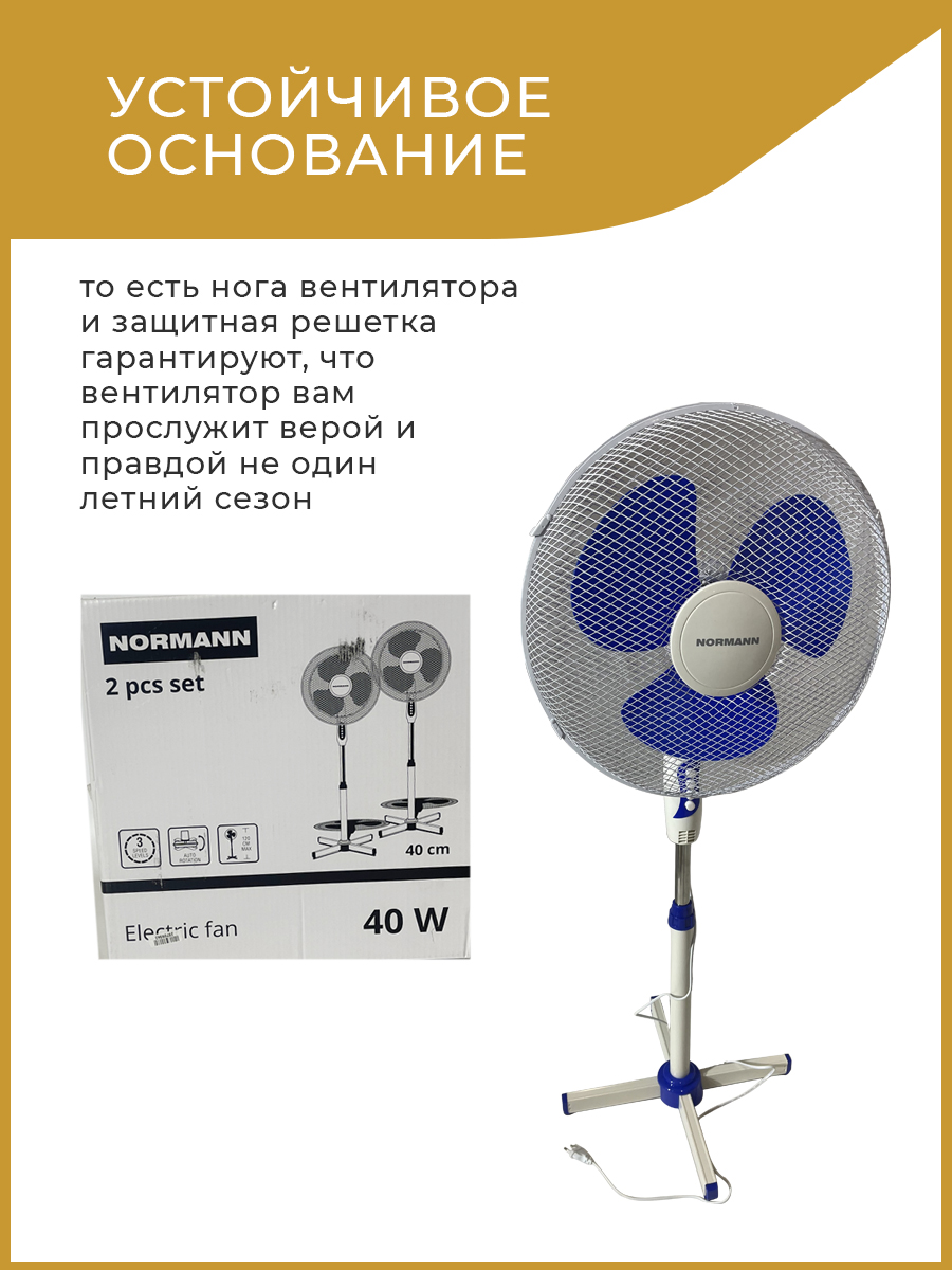 Вентилятор электрический напольный ACF-192 NORMANN (45 Вт; диаметр 40 см; 3 скорости; автоповорот)
