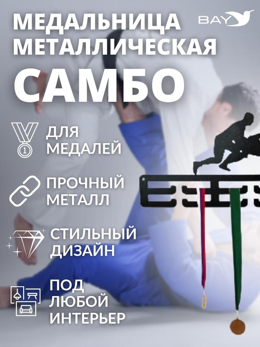 Медальница "Самбо"- это декоративная вещь, предназначенная для хранения и отображения медалей и кубков. Она обычно состоит из держателей или кронштейнов, на которых можно разместить медали. Она имеет подставку с полкой, на которой можно разместить несколько медалей. Также она может иметь вешалку для удобного размещения медалей. Держатель может быть отличным подарком для тренера по футболу или любимому футболисту. Она подойдет для хранения медалей, полученных в спортивных соревнованиях, таких как плавание, хоккей и дзюдо или каратэ, волейбол и тхэквондо. Она позволяет создать спортивный уголок дома, где можно хранить и показывать свои награды и достижения в спорте. Медальницы могут быть разных стилей и дизайна, и могут использоваться также как декоративные вещи. Они помогают организовать и сохранить медали, связанные с различными видами спорта, такими как гимнастика, бег, борьба и другие. Это хранилище для вещей не только позволит вам организовать и хранить свои награды, но и станет стильным дополнением к вашему интерьеру. Она разработана с учетом всех ваших потребностей. Эта вешалка на стену обеспечивает простое и эффективное хранение ваших вещей, кубков, грамот и другие предметы, связанные с вашими успехами. Мы представляем ее в современном дизайне, который подходит как для интерьера спортзала, так и для гостиной, кабинета или детской комнаты. Подставка для медалей это не просто предмет интерьера, это символ ваших достижений и мотивация для новых вершин. Не упустите шанс организовать свои награды и создать уникальное место, где каждая медаль будет напоминать вам о вашем труде. Подарите себе и своим близким эту возможность и продолжайте двигаться к новым победам!
