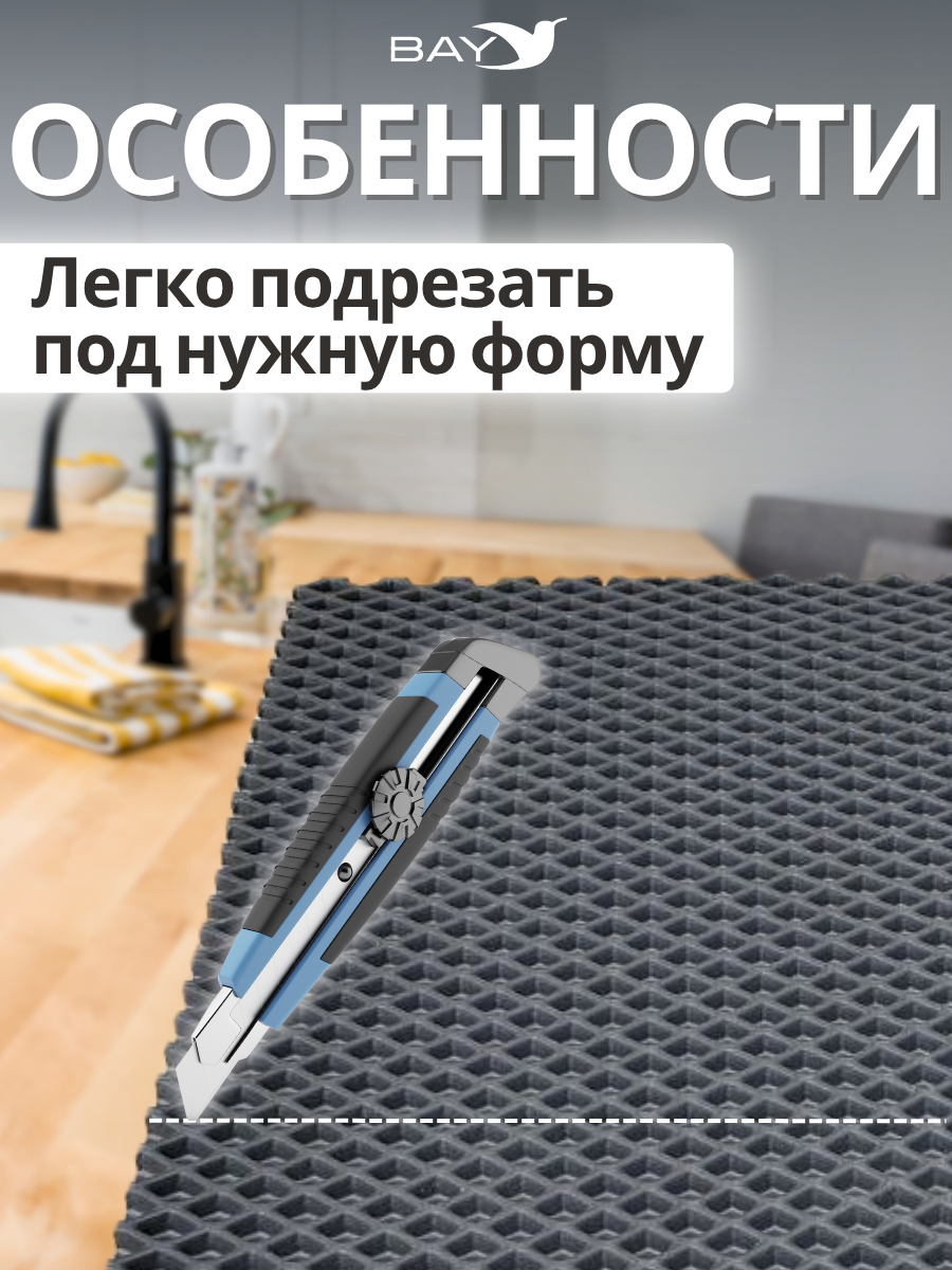 Коврики для сушки посуды — это безворсовые изделия из водонепроницаемого материала eva. Они служат для защиты столешницы и других поверхностей от влаги, царапин и повреждений. Коврик является лучшим выбором для современной кухни. Оптимальные размеры позволяют использовать его на стол возле мойки, в шкаф или кухонный ящик. Ячеистая поверхность удерживает воду, защищает от протекания и бережет посуду от сколов. Это отличное решение для мытья посуды, фруктов и овощей. Защитная подстилка также прекрасно подойдет в холодильник на полку. Нескользящий резиновый коврик с ячейками в виде сот или ромбов, это универсальное приспособление, которое подходит для мокрой посуды, для разморозки продуктов и в качестве подстилки под кухонные приборы. Коврик выполнен из абсолютно безопасного быстросохнущего эко материала. Он обладает водоотталкивающим, термостойким и противоскользящим свойством, подходит для использования в любые шкафчики. Большой коврик также можно обрезать под нужный размер. Непромокаемое изделие легко моется и абсолютно не впитывает запахи. Вырезной коврик — это великолепный вариант на барный или обеденный стол, в холодильник или возле мойки.