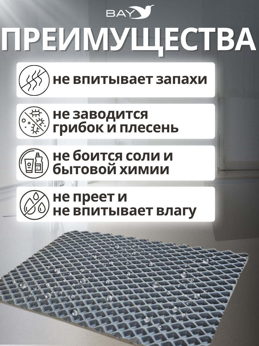 Коврики для сушки посуды — это безворсовые изделия из водонепроницаемого материала eva. Они служат для защиты столешницы и других поверхностей от влаги, царапин и повреждений. Коврик является лучшим выбором для современной кухни. Оптимальные размеры позволяют использовать его на стол возле мойки, в шкаф или кухонный ящик. Ячеистая поверхность удерживает воду, защищает от протекания и бережет посуду от сколов. Это отличное решение для мытья посуды, фруктов и овощей. Защитная подстилка также прекрасно подойдет в холодильник на полку. Нескользящий резиновый коврик с ячейками в виде сот или ромбов, это универсальное приспособление, которое подходит для мокрой посуды, для разморозки продуктов и в качестве подстилки под кухонные приборы. Коврик выполнен из абсолютно безопасного быстросохнущего эко материала. Он обладает водоотталкивающим, термостойким и противоскользящим свойством, подходит для использования в любые шкафчики. Большой коврик также можно обрезать под нужный размер. Непромокаемое изделие легко моется и абсолютно не впитывает запахи. Вырезной коврик — это великолепный вариант на барный или обеденный стол, в холодильник или возле мойки.