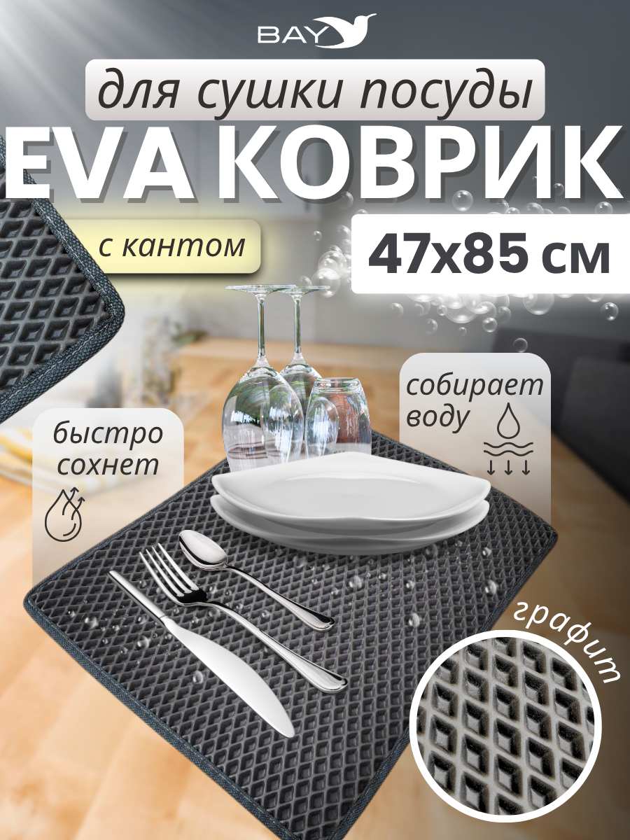 Коврик EVA для сушки посуды с кантом 47x85 см графит