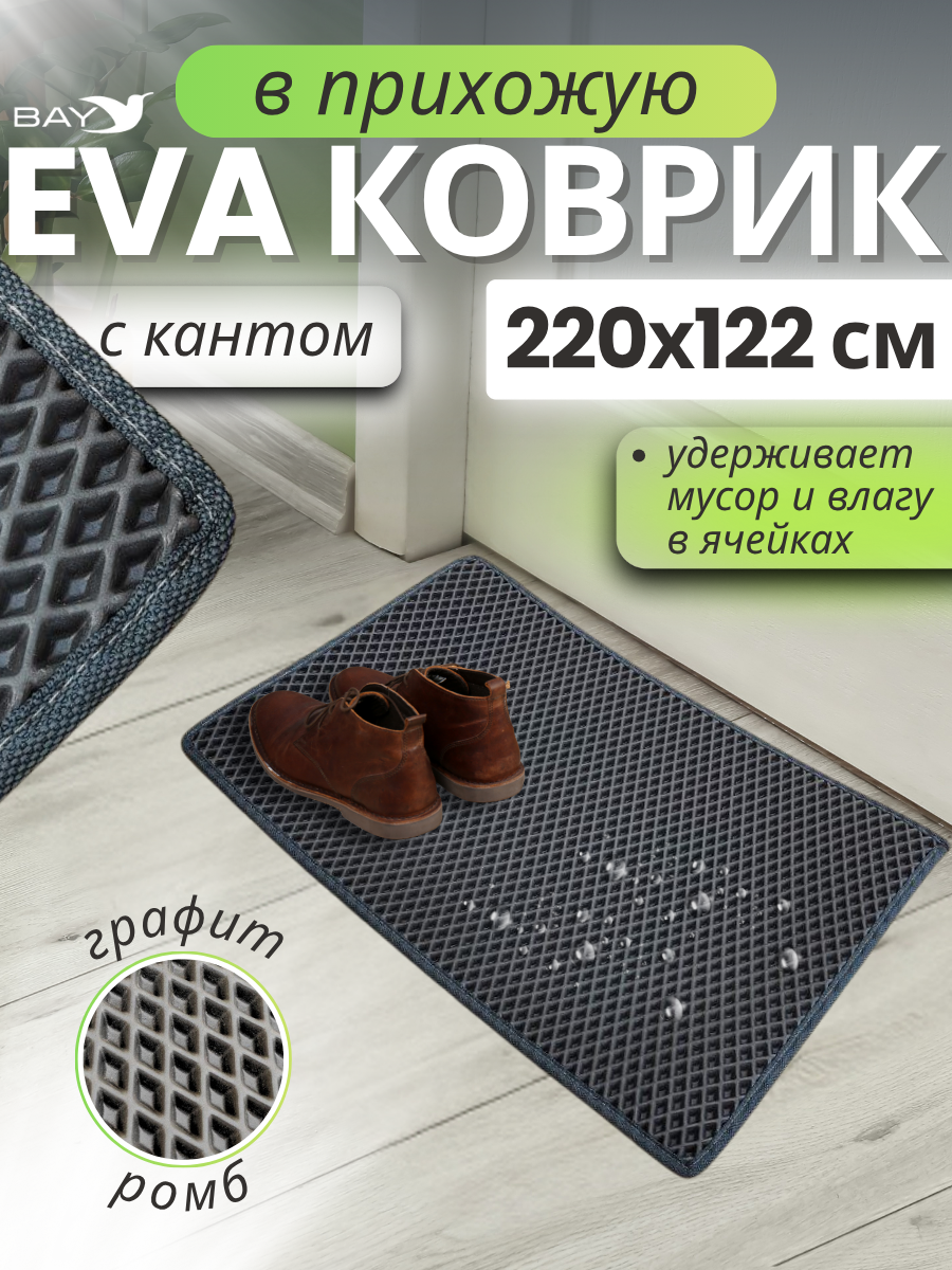 Придверный EVA коврик с кантом в прихожую 220x120 см графит