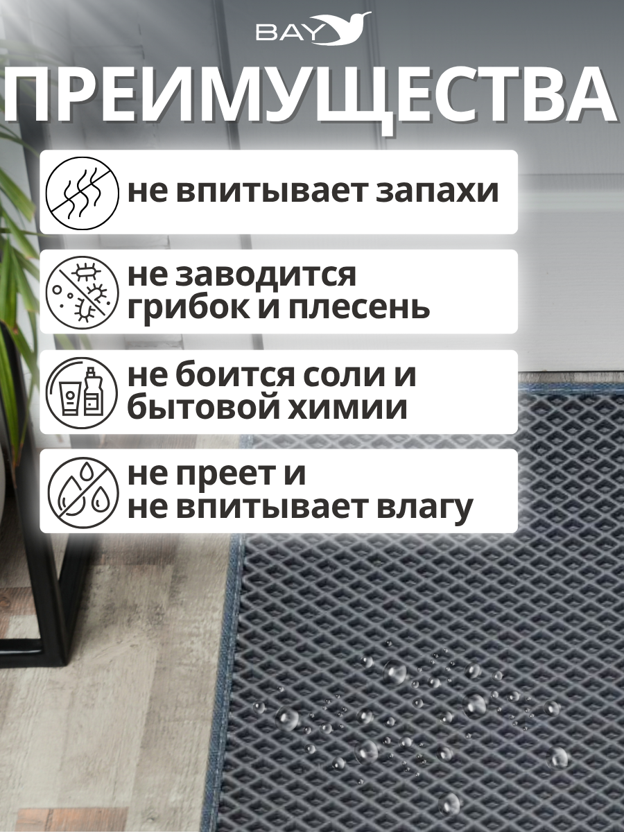 - Ячейки удерживают мелкий мусор, очистить, который можно простым переворачиванием и вытряхиванием коврика